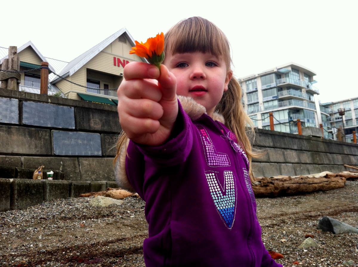 Lila was more easily distracted. And this is so telling of both of my girls. Lucy is more focused, while Lila sees everything. “A flower for you, Mom.”