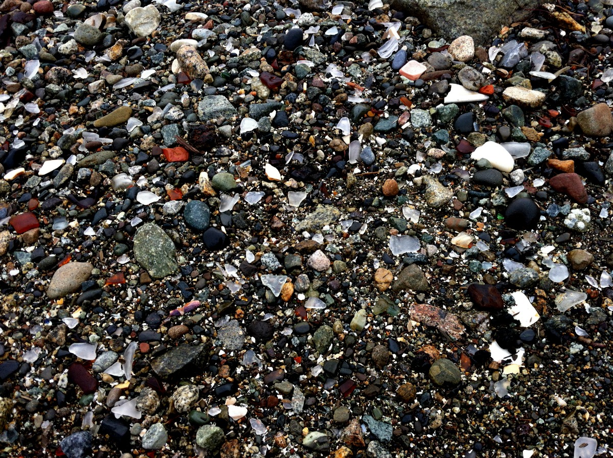 Lila helped Lucy add small pieces of green and blue glass to her collection.