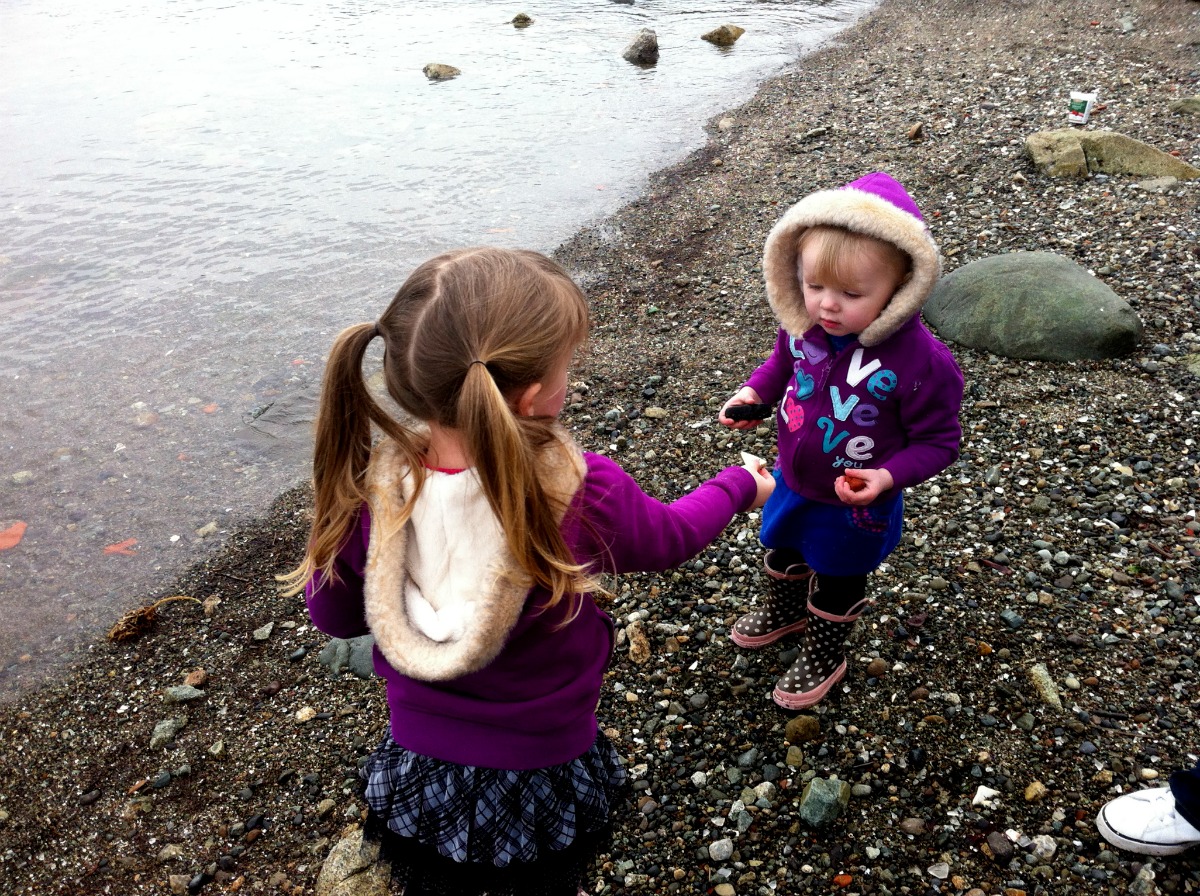 The little trip was wonderful, and despite the way it looks in pictures, the air was surprisingly mild down on the beach. Because it is a tiny protected area, the winds couldn’t get at us. We beach-combed, and “skipped rocks” and nibbled at our doughnuts until it was time to head back to Grandma and Papa’s. I think that all of us felt like it was a fitting reward.
